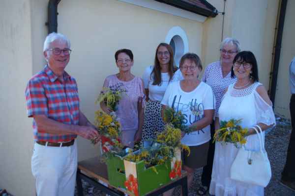 Barbing. Rund 70 Kräuterbuschen haben Mitglieder des KDFB Barbing am 12.8. vor Mariä Himmelfahrt - dem größten Marienfest, im Garten von Angelica Finger in Barbing gebunden. Der Fortbestand von kirchlichen und ländlichen Traditionen wird auch in Barbing nach wie vor hoch gehalten. Die herrlich duftenden Gebinde wurden vor und nach dem feierlichen Gottesdienst am Sonntagabend 14.8., den Pfarrvikar Reginald Uzoho zelebrierte, zum Kauf angeboten.