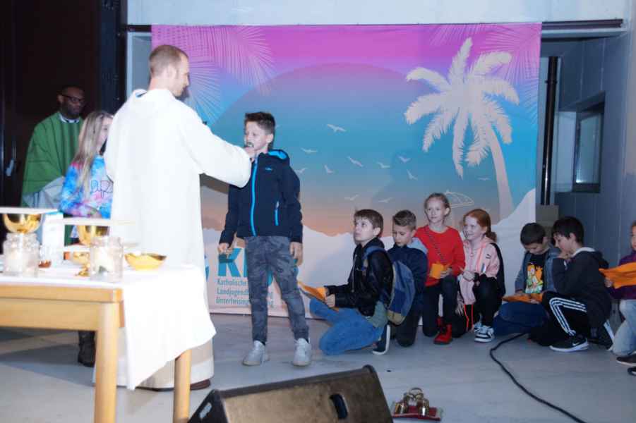 Die Firmlinge machten begeistert mit, denn jeder, ob Klein oder Groß, kennt diese Tage, wo nichts so läuft, wie man es sich vorgestellt hat und intuitiv wurde die Botschaft der Firmung deutlich, dass die Gaben des Heiligen Geistes, der bei der Firmung empfangen wird, den Heranwachsenden Orientierung bei der Sinnsuche schenkt, Selbstbewusstsein und Stärke bringt und dies zu ihrer Entwicklung ihrer Persönlichkeit zu einem vertrauensvollen Menschen und Gottesbild führen. Mit Begeisterung waren sie anschließend auch beim DJ-Gottesdienst der KLJB involviert, den Pfarrvikar Reginald Uzoho zelebrierte.