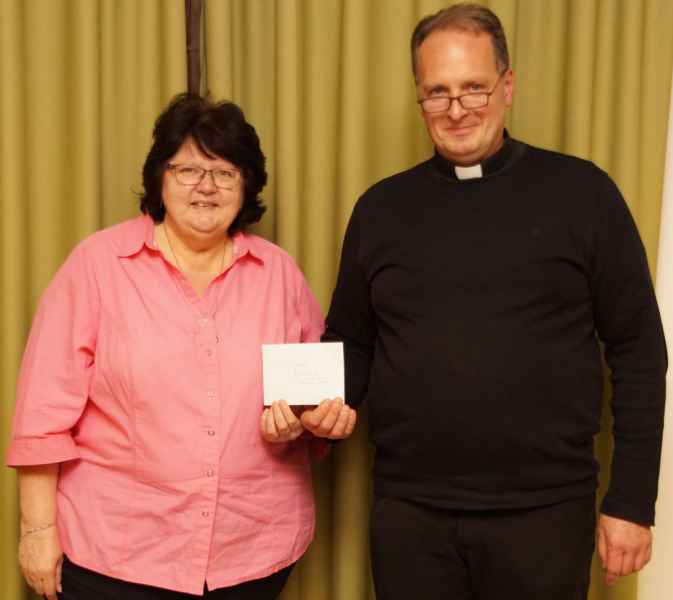 Am Ende des Abends überreichte Vorsitzende Gerda Skasik im Namen des KDFB-Zweigvereins 500 Euro an Pfarrer Stefan Wissel für den Sozialfonds der Pfarrei. „Wir denken Sie wissen, wo dieses Geld gebraucht wird“, betonte die Vorsitzende, wohlwissen, dass die Not oft schon im Nachbarhaus wohne. Der Geistliche bedankte sich mit einem herzlichen „Vergelt’s Gott©Christine Kroschinski