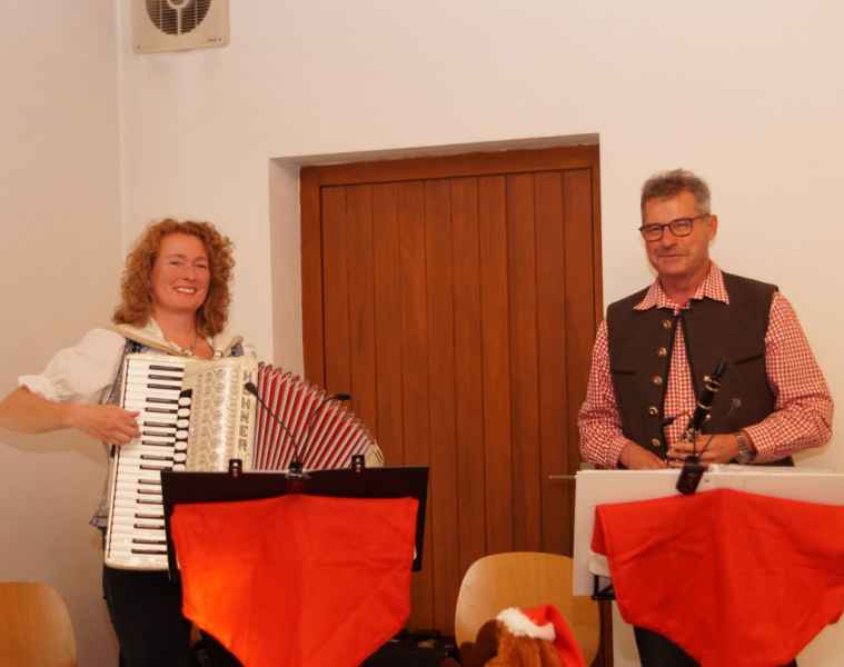 „Leise rieselt der Schnee“, „Kling Glöckchen“ und „Alle Jahre wieder“, sangen die Senioren am Beginn der Feier, musikalisch begleitet von dem Duo „Sunnseitn Muse“ mit Sonja Kreiml und Richard Ottl. Die Adventszeit sei auch eine passende Gelegenheit, dass man wieder offen werde und das Herz für Gott und die Menschen öffne, so die Botschaft. Natürlich hatten auch Pfarrer Stefan Wissel, Brigitte Berger, Belinda Meier-Scherl und Hildegard Gürster auch weitere Geschichten zum Advent und der Zeit der Erwartung, aber auch über die Heilige Barbara, deren Namenstag man diesmal am zweiten Adventsonntag feierte. Ferner öffnete man „Das Lebendige Adventsfenster“, hierzu hatte Christine Beck das von ihr und Gerlinde Gerlach gestaltete Adventsfenster der Faschingsfreunde nach Illkofen gebracht und erzählte von dem Kleinen Stern der etwas Besonderes sein wollte.