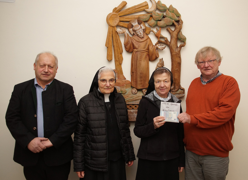 Die dabei erhaltenen Spenden in Höhe von 250 Euro wurden nun am vergangenen Freitagnachmittag an Schwester Melanie (Generalvikarin) und Schwester Ruth von den Mallersdorfer Schwestern, im Kloster Mallersdorf überreicht. Der Kontakt besteht durch die berufliche Tätigkeit von Peter Niedermeier. Schwester Melanie berichtete, dass das Geld nach Siebenbürgen in Rumänien zu den ungarischen Mitschwestern weitergeleitet werde. Die Mitschwestern in Rumänien packen vor allen Dingen für Kinder Weihnachtspäckchen. Überwiegend landen in den Päckchen auch Hygieneartikel.