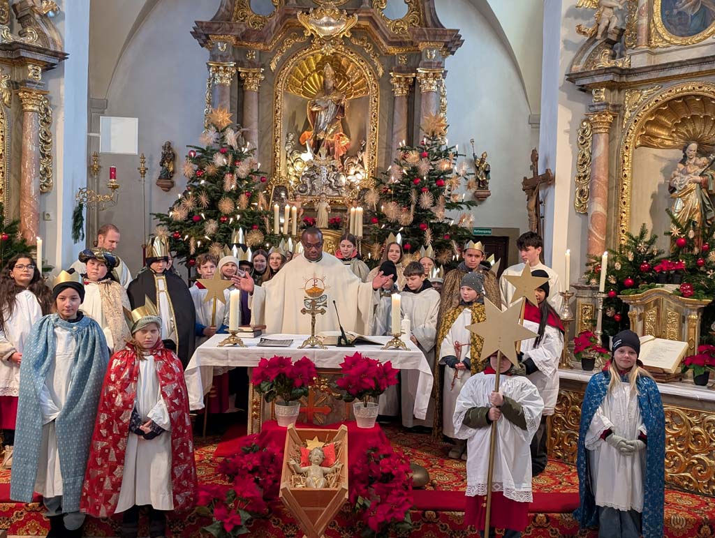 Die Ministranten werden dabei stets auf diese ehrenvolle Aufgabe von den Geistlichen sowie Pfarrassistent Sebastian Schmola vorbereitet. Pfarrer Stefan Wissel, der die Messen in Barbing und Sarching sowie Pfarrvikar Reginald Uzoho, der den Gottesdienst in Illkofen zelebrierte und sich am Mittwoch inzwischen zu einem vierwöchigen Besuch auf in sein Heimatland Nigeria machte, waren hoch erfreut, dass sich von allen Ministranten in der Pfarreiengemeinschaft über 80 gemeldet hatten, um als wunderbare Botschafter und Friedensbringer unterwegs zu sein und als festlich gekleidete Heilige Drei Könige mit dem Kreidezeichen „C+M+B 2026“ den Segen zu den Menschen zu bringen.