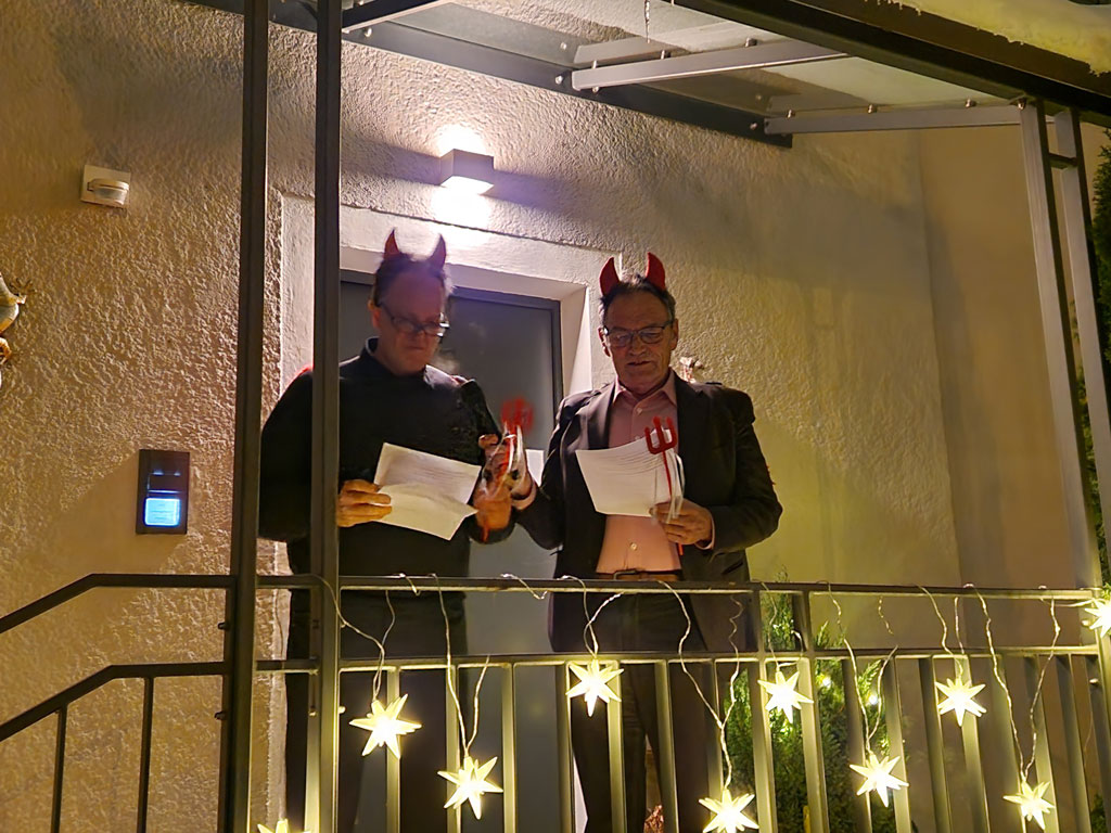 Lebendiger Adventskalender bringt Barbinger zusammen - Sind Pfarrer Stefan Wissel und Bürgermeister Hans Thiel der Hölle noch einmal entkommen oder war alles nur ein Traum?