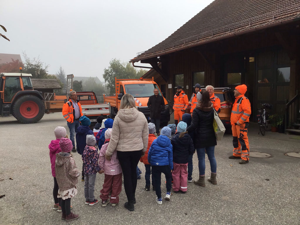 Kleine Gäste, große Fahrzeuge: Vorschulkinder der Kita St. Martin besuchten den Bauhof
