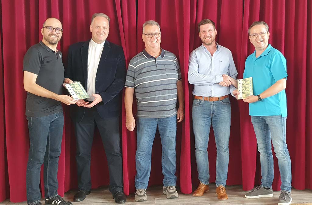 AC/Barbing City Band übergab 500 Euro Spende an Pfarrer Stefan Wissel für den Sozialfonds